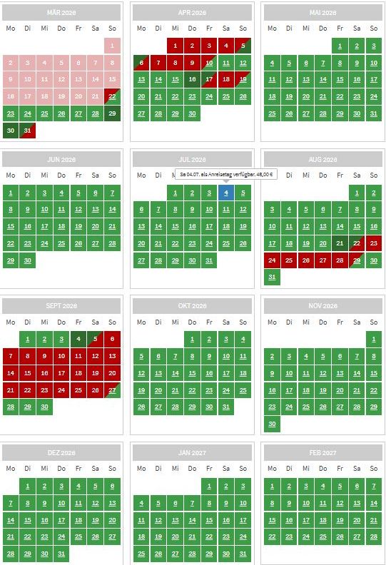 - 1.Nacht 95,00€ jede weitere Nacht 45,00€